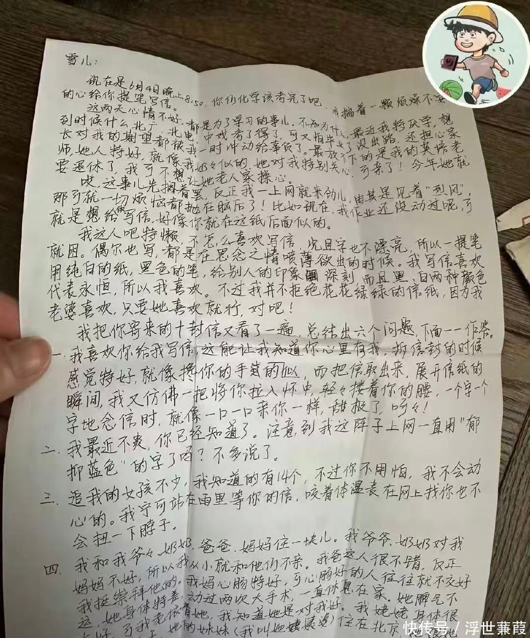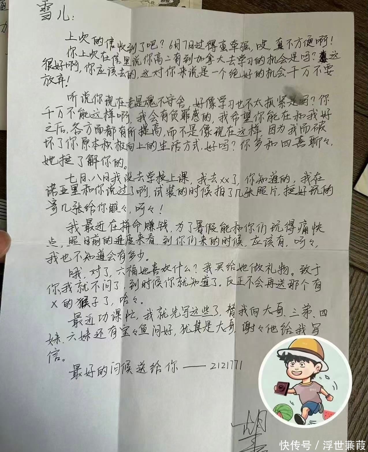 他在信中写道:“我要努力攒钱,只为暑假能多见你一面”,甚至提前规划好要送给雪儿朋友们的小礼物,心思细腻得令人莞尔。