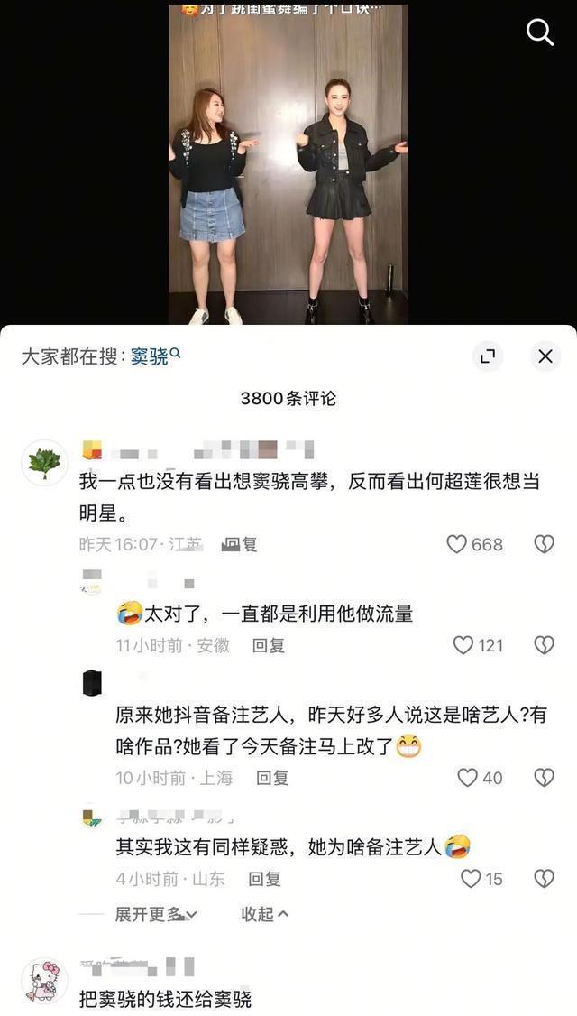 还有网友让何超莲还窦骁钱,真是到了群情激愤的地步,这样下去,何超莲别说事业了,离婚再找对象都难啊! 这样做的结果最受益的还是窦骁,不得不说窦骁的公关完全做对了,从爱处入手,无人能反驳,顺便在营销一下二人在备孕,事情完美收官,他是不还得感谢一下向太呢?